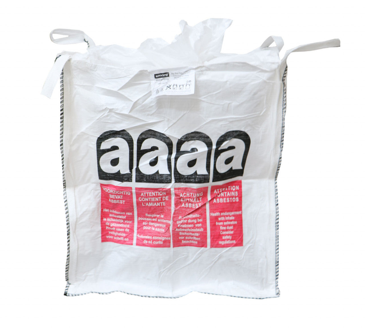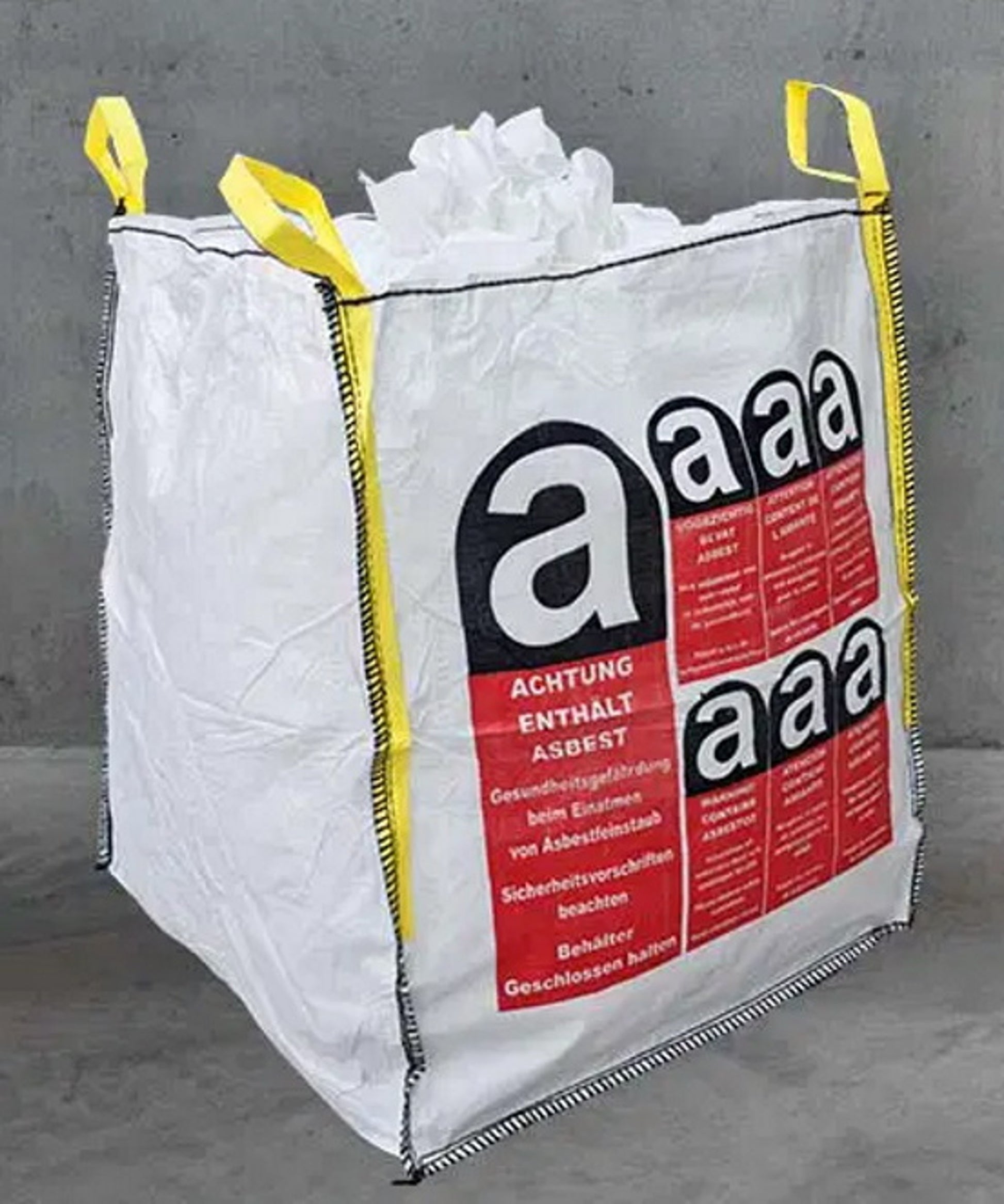 DS SafetyWear Arbeitsschutzprodukte GmbH, Im Rohnweiher 14, 53797 Lohmar1x Palette = 350 Stück Asbest Big Bag 90x90x110cm SWL 1000kg Transportsack beschichtet Asbest Warndruck Schürze