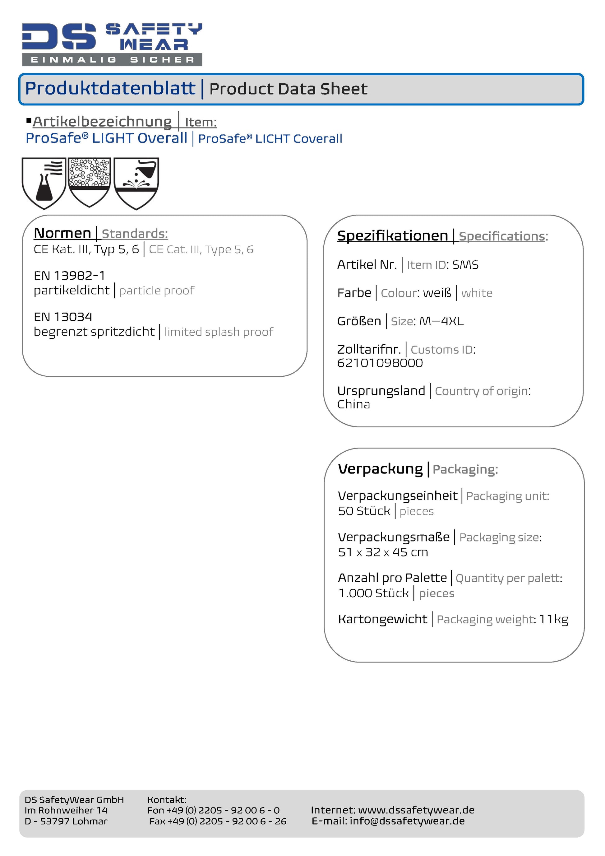 1x ProSafe®LIGHT Schutzoverall