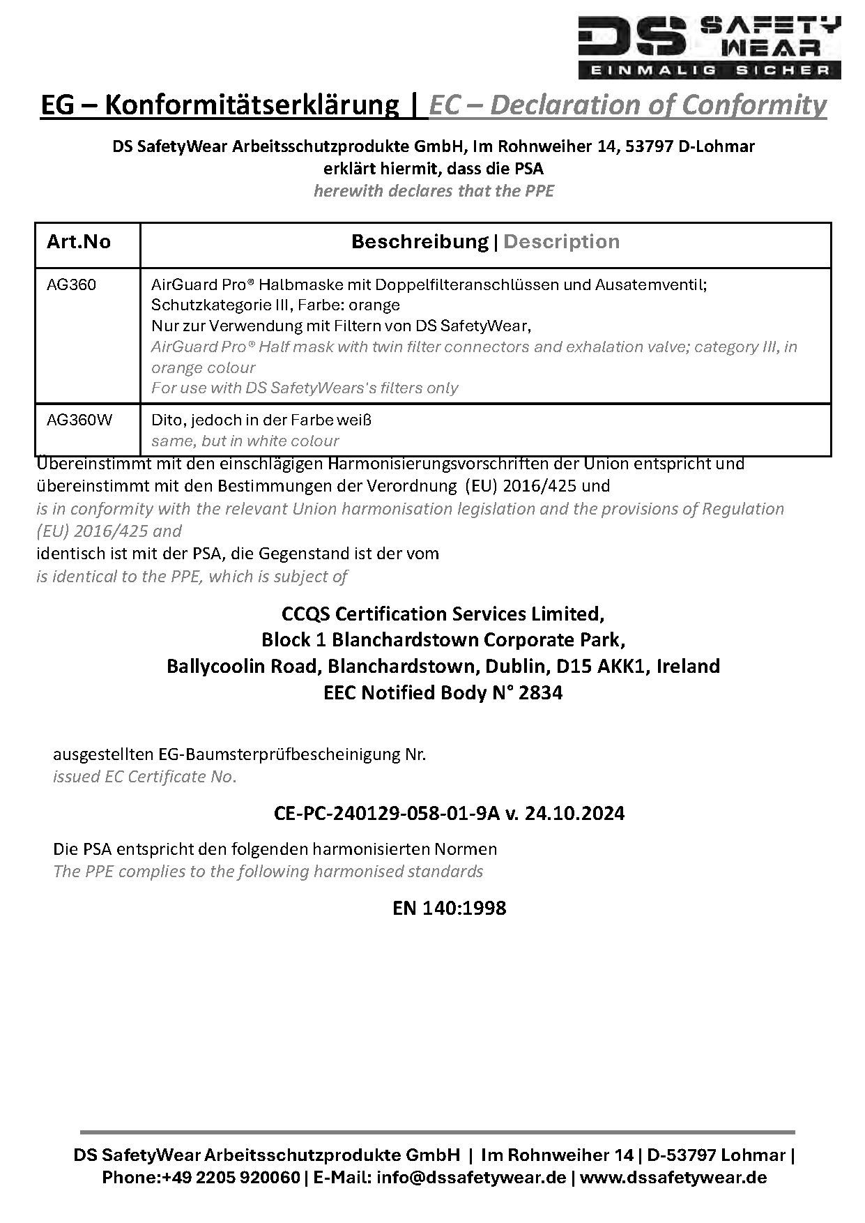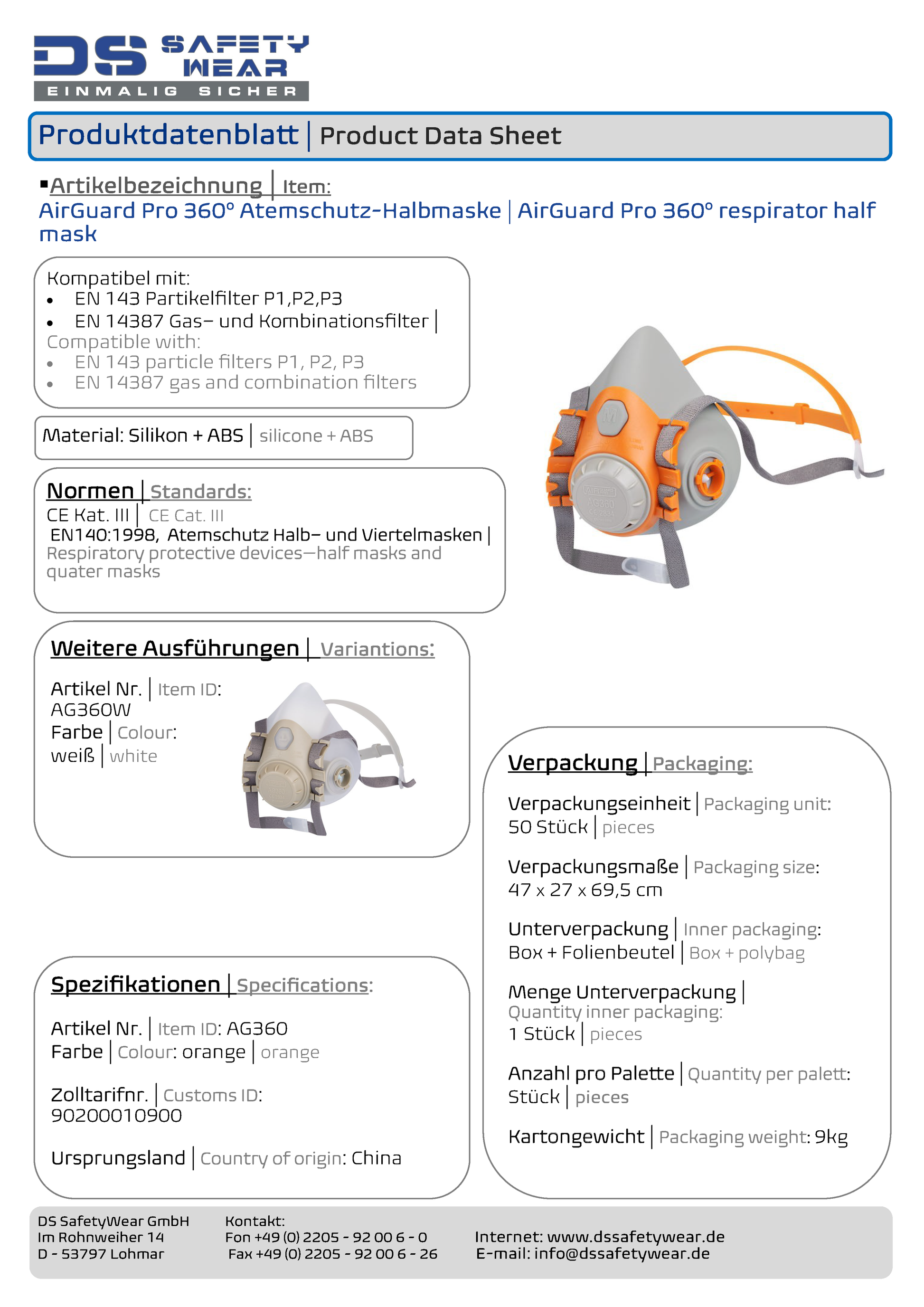 DS SafetyWear Arbeitsschutzprodukte GmbH, Im Rohnweiher 14, 53797 LohmarHALBMASKE ohne Filter Baumaske Atemschutz Feinstaubmaske mit Ventil für Asbest und KMF EN149