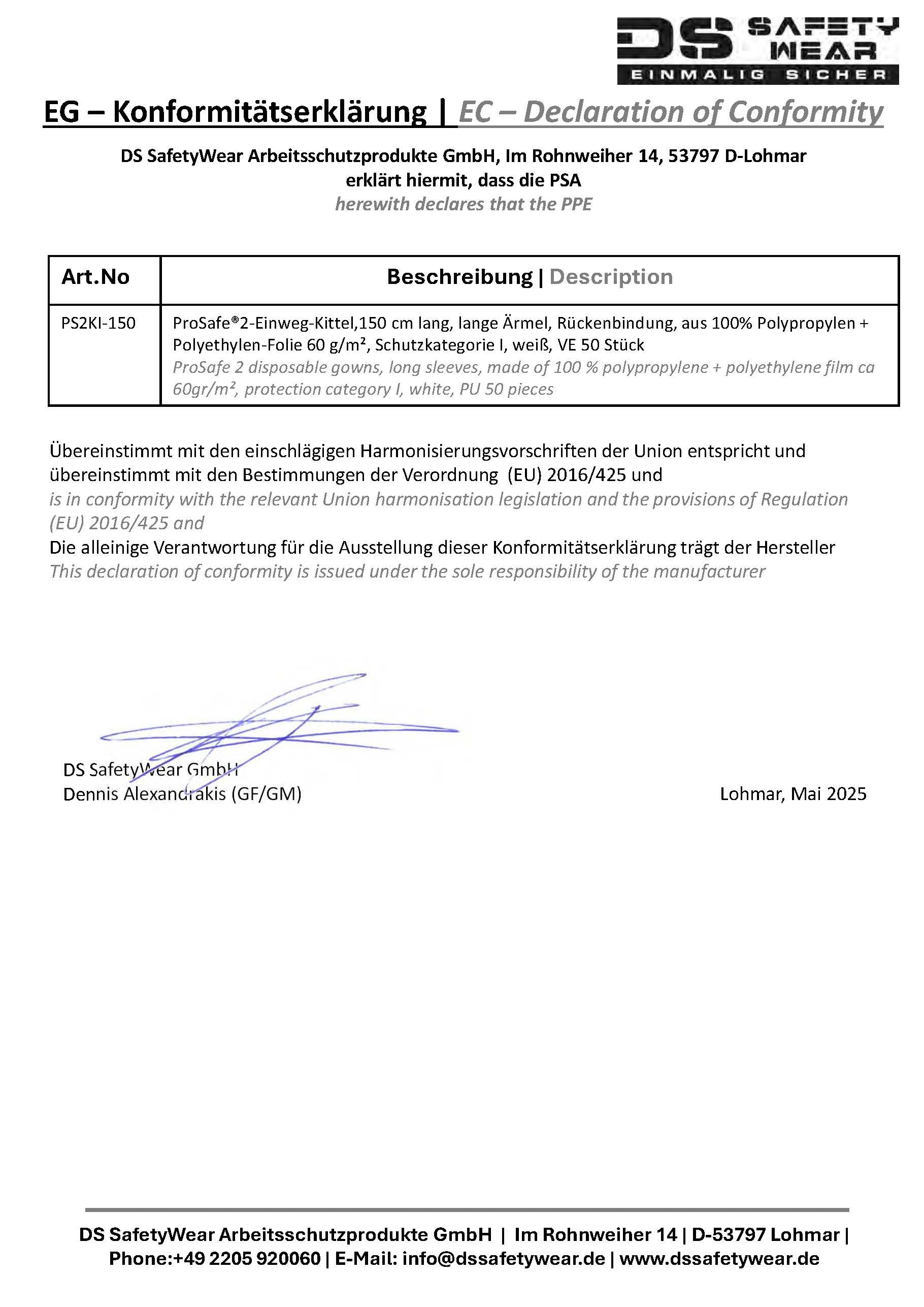 DS SafetyWear Arbeitsschutzprodukte GmbH, Im Rohnweiher 14, 53797 LohmarKARTON 50 STÜCK ProSafe®2 Asbestanzug weiss CAT.III Typ 5B 6B ProSafe®2 Schutzanzug Maleranzug Schutzoverall Einwegoverall Asbestsanierung KMF Dämmwolle Sanierung Weiss (Kopie)