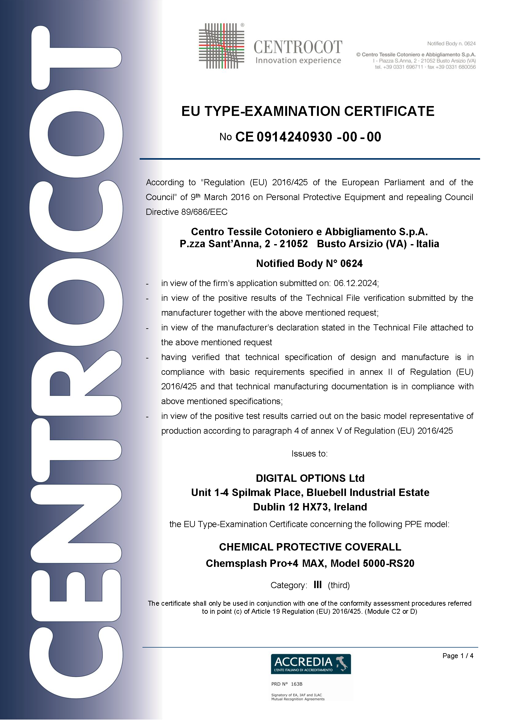 - Tipo 4B, 5B, 6B (EN 14605, EN ISO 13982, EN 13034)